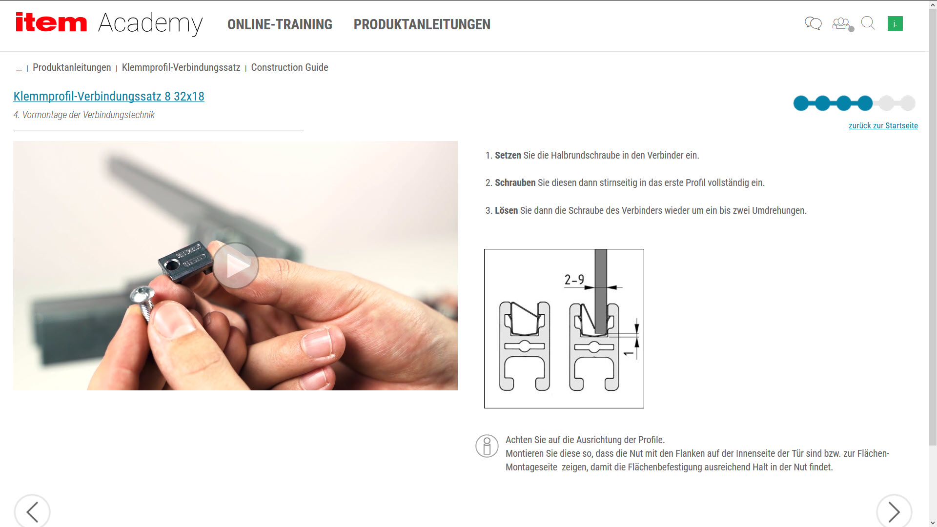 Expanding expertise to suit specific needs – when coupled with a well-thought-out approach, e-learning can be used to tailor vocational training ever closer to learners’ individual needs. It also offers a way to optimise the learning process and share knowledge efficiently. item set out to achieve all these things, and offers web-based training and assembly guides for customers and partners in the item Academy. Content relating to products and specialist topics in industrial production is easy to follow and presented in a compact format. The online portfolio has been designed using the ILIAS learning management system.